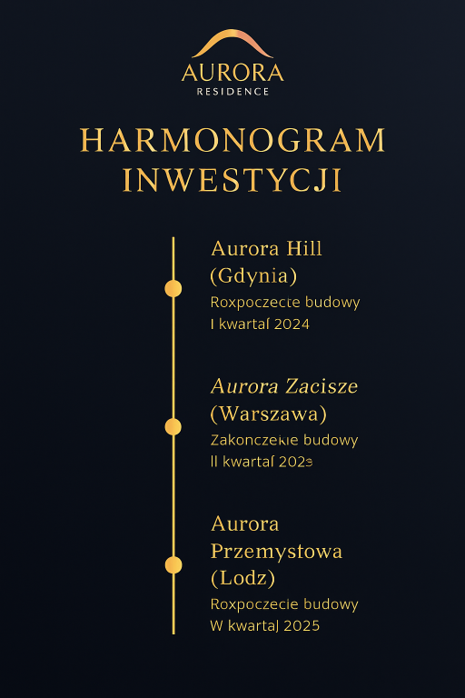 • Aurora Wilanów (Warszawa) – ukończenie: IV kwartał 2025
